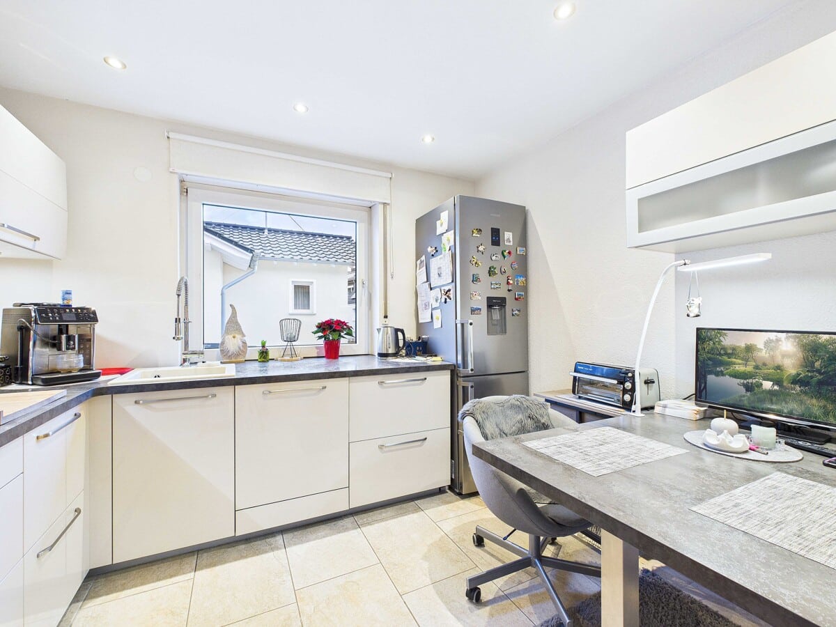Das großzügige Wohn-Esszimmer bildet das Herzstück mit direktem Zugang zur Terrasse und in den Garten. Der anliegende Küchenbereich bietet kurze Wege und praktische Strukturen für den Alltag. Zwei gut proportionierte Schlafzimmer sowie ein weiteres Zimmer mit Nutzungsmöglichkeit als Büro oder Gästezimmer erweitern den Wohnkomfort. Das Tageslichtbadezimmer mit Dusche und Wanne unterstreicht den wohnlichen Charakter dieser ca. 125 m² großen Einheit.