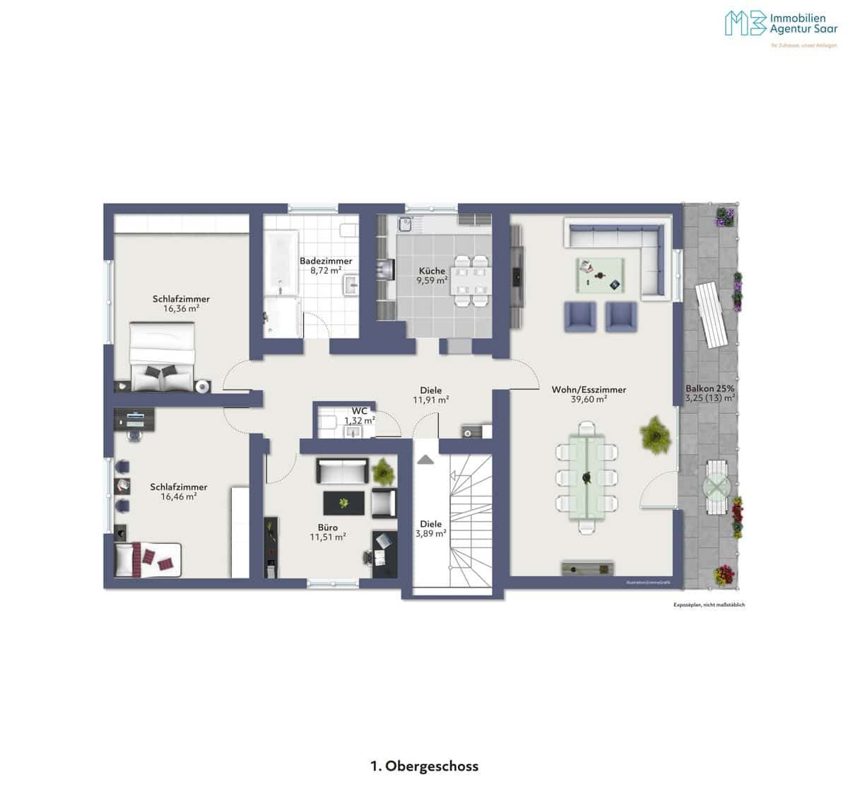 Der Balkon mit Gartenzugang lädt zum Verweilen ein und schafft einen fließenden Übergang zwischen innen und außen. Zwei Schlafzimmer, ein zusätzliches Arbeitszimmer sowie ein Tageslichtbadezimmer mit Wanne, Dusche und Waschmaschinenanschluss bieten eine stimmige Grundlage für zeitgemäße Wohnansprüche. Ein separates Gäste-WC ergänzt die ca. 125 m² große Einheit sinnvoll.
