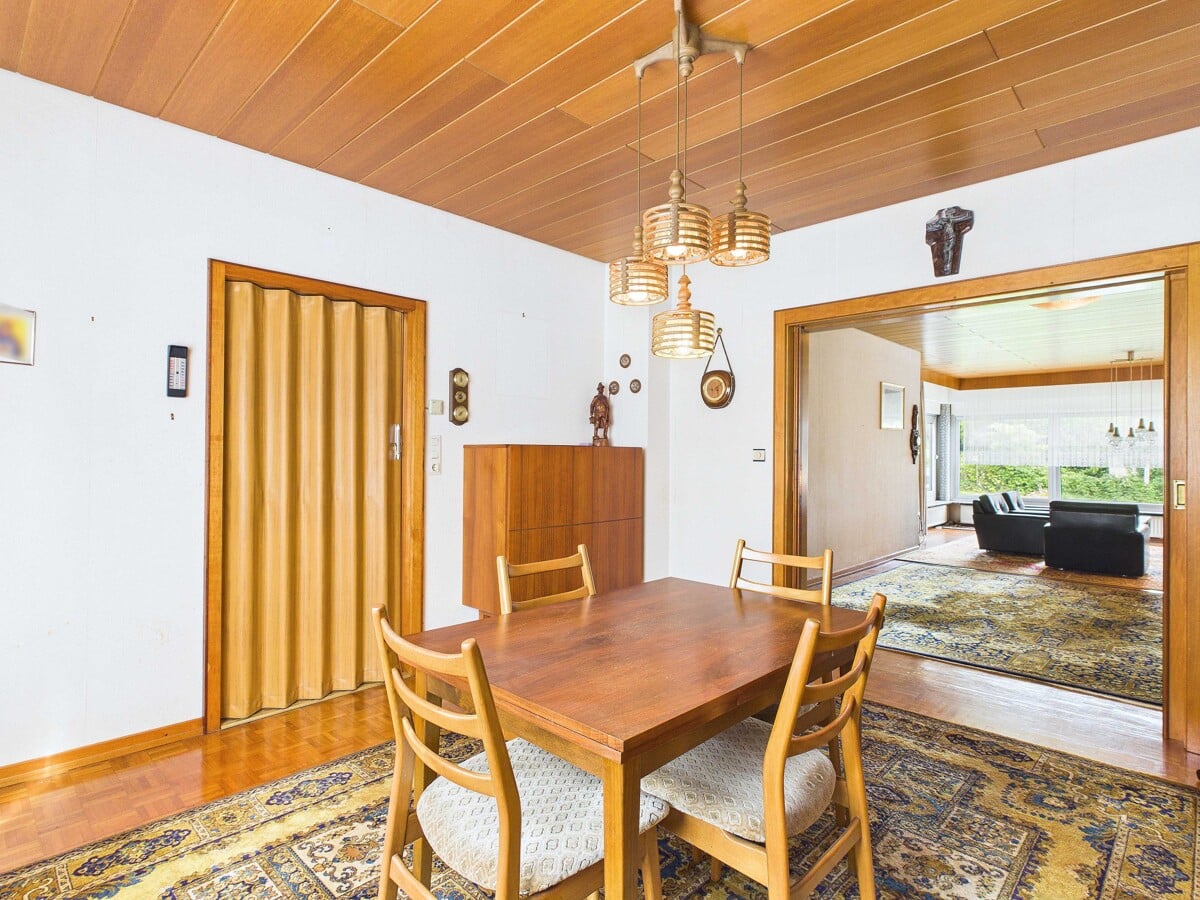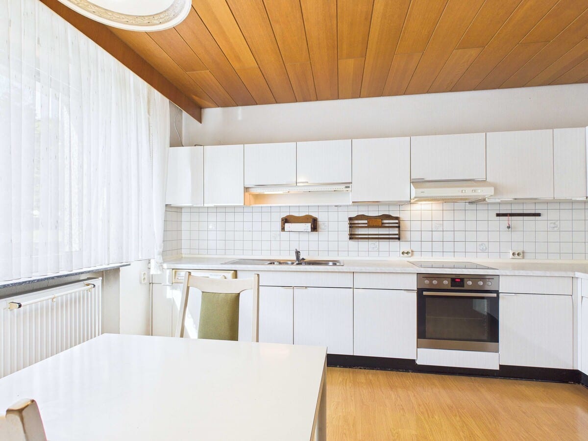 Angrenzend befindet das derzeitige Esszimmer, welches alternativ als Schlafzimmer nutzbar wäre. Der Küchenbereich ist über das Esszimmer, als auch über die Diele erreichbar und verfügt über eine gemütliche Essecke mit ausreichend Platz.