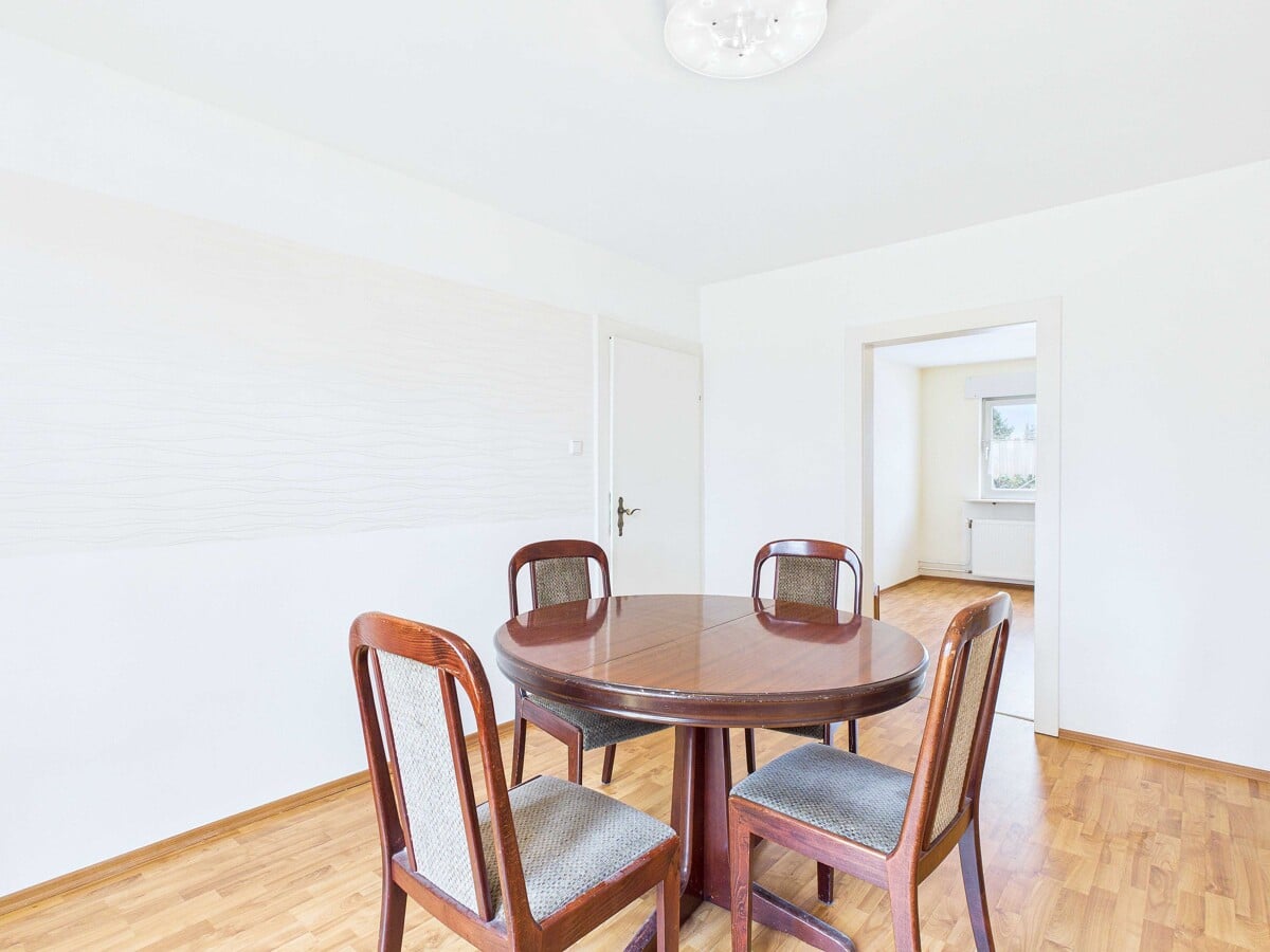 Die Einliegerwohnung im Untergeschoss bietet separate Wohnmöglichkeiten mit eigenem Zugang zum Garten. Ein offen gestaltetes Wohn-Esszimmer ermöglicht die Integration einer Küche und schafft damit eine autarke Einheit für Familienmitglieder oder zur Vermietung. Das Schlafzimmer eignet sich als Rückzugsbereich, das Badezimmer bietet Potenzial für eine individuelle Neuplanung. Mit handwerklichem Geschick lassen sich hier eigene Vorstellungen verwirklichen.