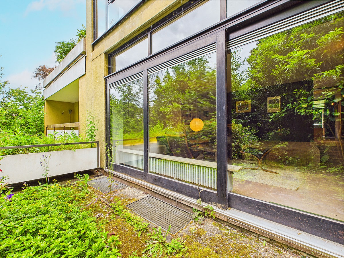 Die großzügige Terrassentür verbindet den Wohnraum direkt mit dem Außenbereich, perfekt für sonnige Stunden im Freien und harmonisches Wohnen mit der Natur.
