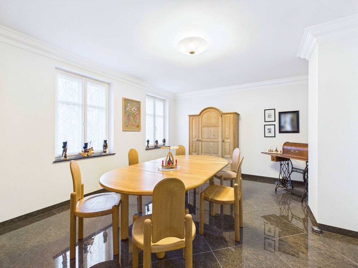 Hochwertige Materialien wie Granitboden, Fußbodenheizung, Stuckelemente und massive Esche-Türen verleihen der gesamten Einheit eine stimmige und wohnlich-elegante Note.