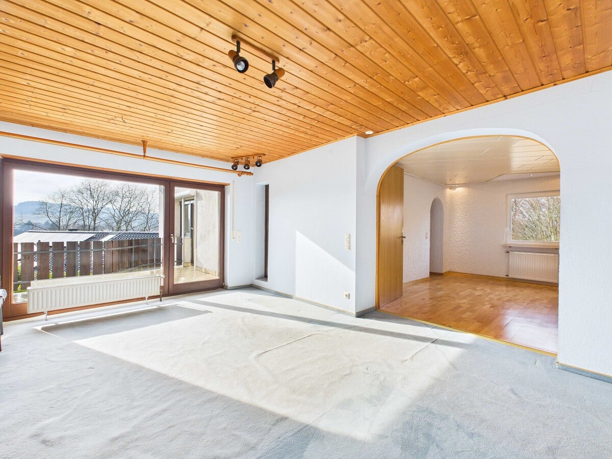 Im Dachgeschoss erwartet Sie ein großzügiges Studio mit offener Gestaltung und beeindruckender Fensterfläche. Das weitläufige Fensterelement eröffnet den Blick auf den überdachten Balkon und in die umliegende Natur. Dieser Bereich lässt sich flexibel nutzen und bietet Ihnen die Möglichkeit einen inspirierenden Arbeitsbereich, einen privaten Rückzugsort oder einen separaten Jugendbereich zu gestalten.