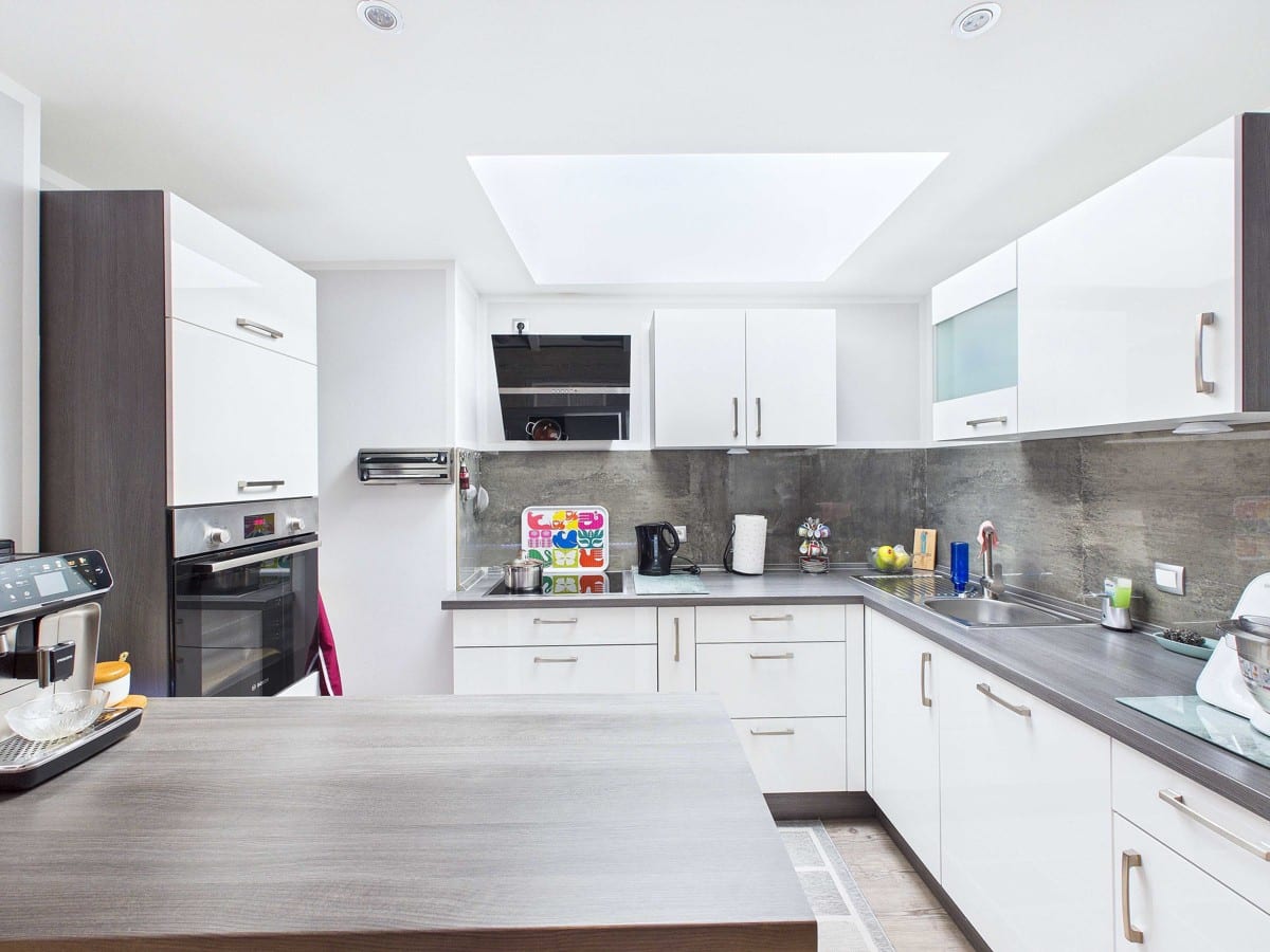 Die offene Gestaltung schafft fließende Übergänge zwischen Kochen, Essen und Wohnen.