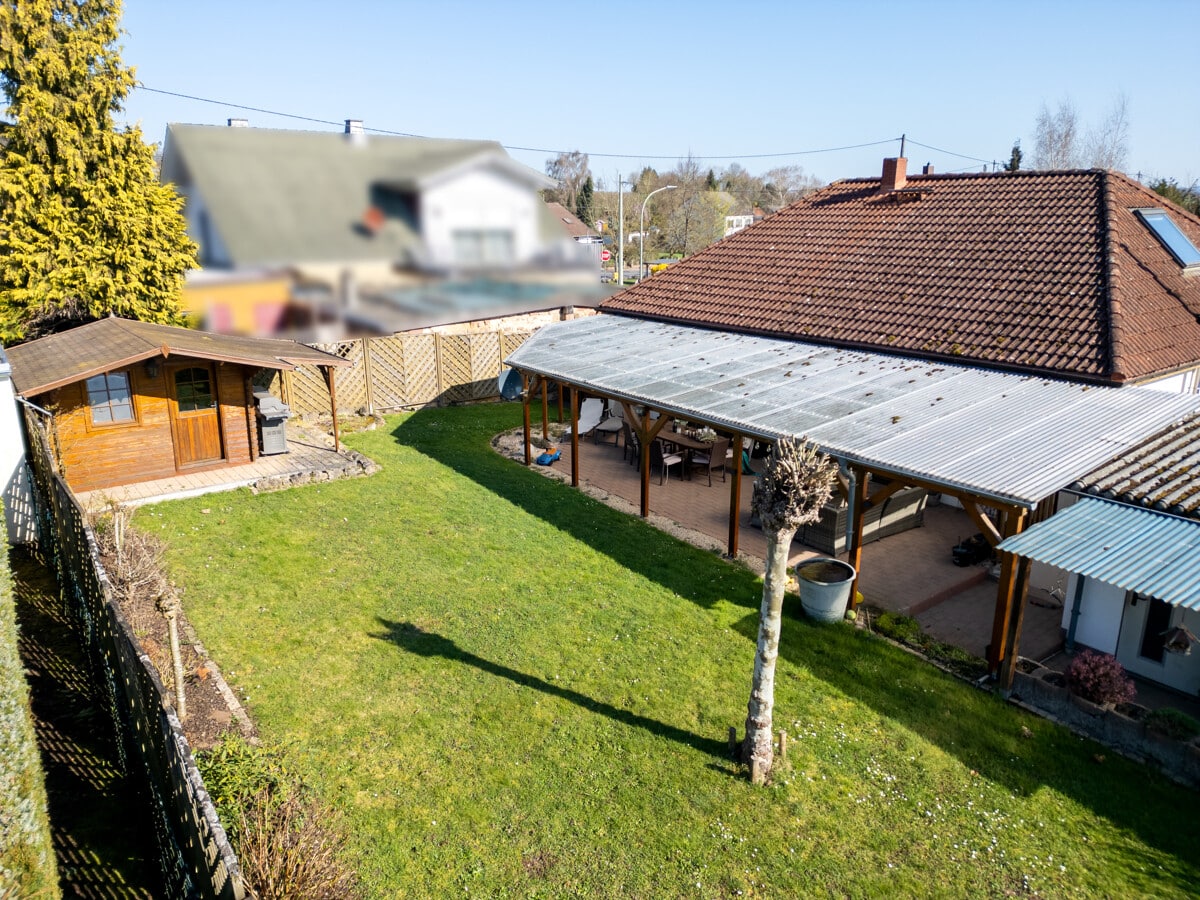 Der Außenbereich präsentiert sich mit einer Südwest-Ausrichtung und ermöglicht sonnige Stunden bis in die Abendzeit. Die überdachte Terrasse bietet einen geschützten Platz für gesellige Stunden im Freien, während die Rasenfläche Raum für Erholung und individuelle Gestaltungsideen bieten. Der Garten ist sowohl über den Vorgarten, über das Untergeschoss als auch über die Garage zugänglich. Das Gartenhaus ergänzt das Angebot und sorgt für zusätzlichen Stauraum.