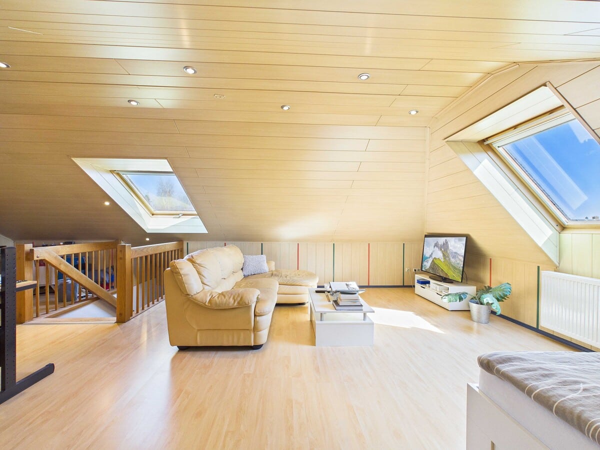 Im Dachgeschoss erwartet Sie ein offen gestalteter Studiobereich, dessen Dachschrägen sich harmonisch in das Raumgefüge einfügen und eine besondere Wohnatmosphäre schaffen. Dieser Bereich eignet sich ideal als Rückzugsort für heranwachsende Kinder, als Homeoffice oder für kreative Nutzungen.