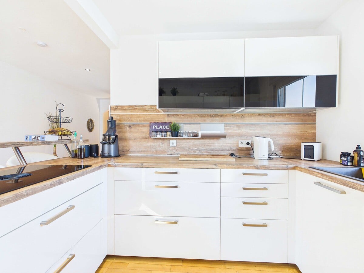 Sie betreten die Immobilie über die Diele, von der aus sich der zentrale Lebensbereich öffnet. Das offen gestaltete Wohn-Esszimmer mit integriertem Küchenbereich präsentiert sich großzügig und einladend. Die modern gestaltete Küche fügt sich harmonisch ein und bildet mit der Theke einen kommunikativen Mittelpunkt. Der Wohnbereich entfaltet sich mit Platz für eine großzügige Essgruppe sowie einen komfortablen Sitzbereich. Der Pelletofen sorgt für behagliche Wärme und unterstreicht die wohnliche Atmosphäre. Die überdachte Terrasse erweitert den Wohnraum ins Freie. Parkettboden, freundliche Lichtverhältnisse und eine durchdachte Gestaltung verleihen eine zeitlose Wohnqualität. Über die zweite Diele erschließen sich die privaten Räumlichkeiten. Das Schlafzimmer bietet direkten Zugang zur Terrasse und eröffnet einen ruhigen Rückzugsort. Gegenüberliegend befindet sich das zweite Schlafzimmer, welches als Kinder-, Gäste- oder Arbeitsbereich genutzt werden kann. Das im Jahr 2014 modernisierte Tageslichtbadezimmer überzeugt mit einer ebenerdigen Dusche und einer modernen Ausstattung. Das Gäste-WC ergänzt diese Ebene.