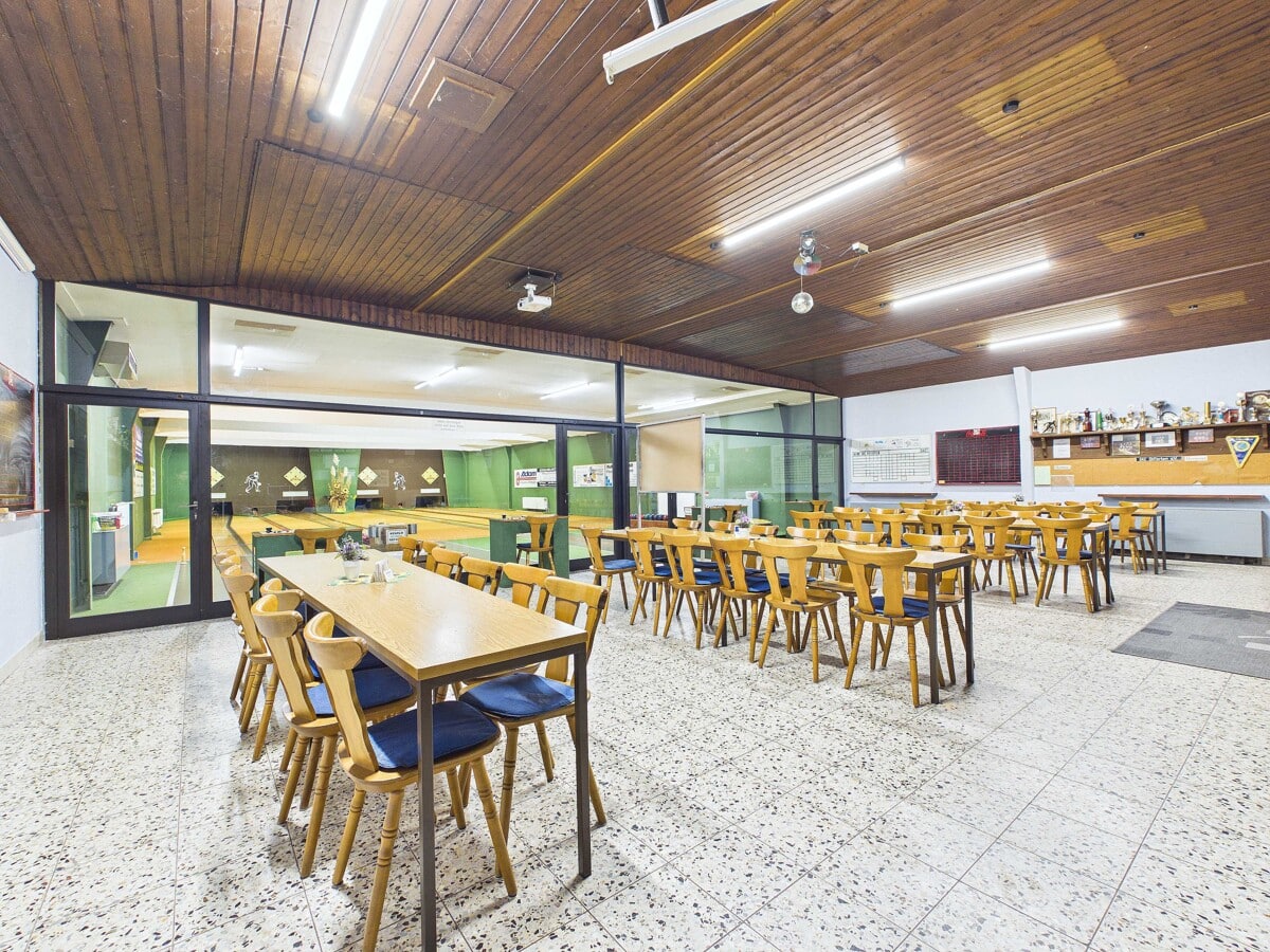 Die Gaststätte verfügt über großzügige Innenflächen, die funktional gestaltet sind und eine solide Grundlage für eine Fortführung oder Neugestaltung des Betriebes bieten. Im Untergeschoss befindet sich die Kegelbahn, die in Leichtbauweise errichtet wurde. Diese Bauart ermöglicht Ihnen bei einer Neustrukturierung flexible Rückbauoptionen und erleichtert die Anpassung an ein neues Nutzungskonzept. Mit einer klaren Vision können Sie die bestehenden Strukturen an moderne Anforderungen anpassen oder vollständig neu denken.