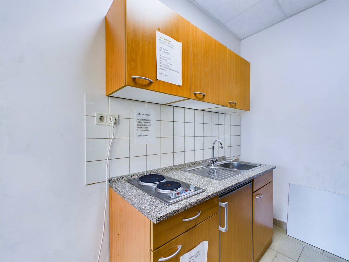 Ein Aufenthaltsraum mit Küchenbereich und sanitären Anlagen rundet das Angebot ab und erhöht den Komfort für Sie und Ihr Team.