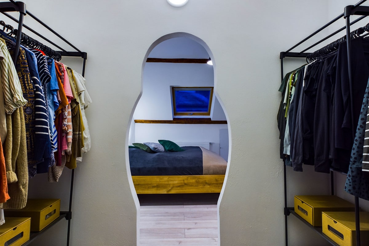 Das angrenzende Schlafzimmer strahlt Gemütlichkeit und Helligkeit aus und verfügt über einen integrierten Ankleideraum, der zusätzlichen Komfort bietet.