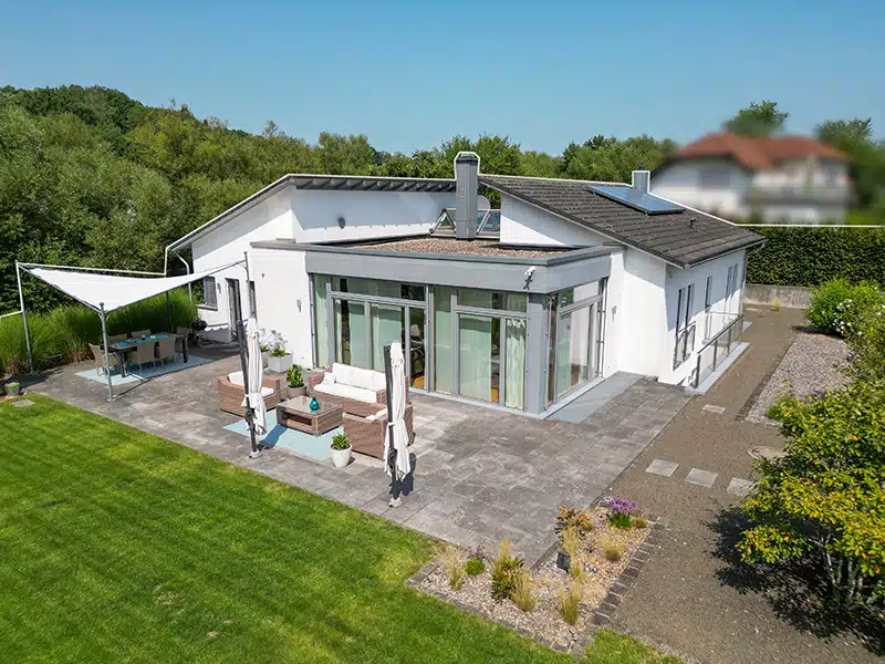 Eine präzise Marktanalyse legt den passenden Preis fest, hochwertige Fotos und Drohnenaufnahmen setzen die Immobilie stark in Szene, der Garten wird als zentrales Highlight präsentiert. Ergänzend sorgen gezieltes Online-Marketing mit Social Ads und lokale Offline-Werbung für maximale Sichtbarkeit.